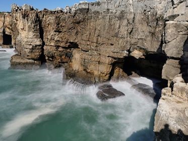 The Boca de Inferno – The Mouth of Hell – is on the sea road going west from the centre of Cascais. Originally a sea cave it collapsed leaving a chasm into which the wild Atlantic waves crash, and during strong storms the water explodes upwards like a volcano. Alice imagines at one point throwing her phone into it…